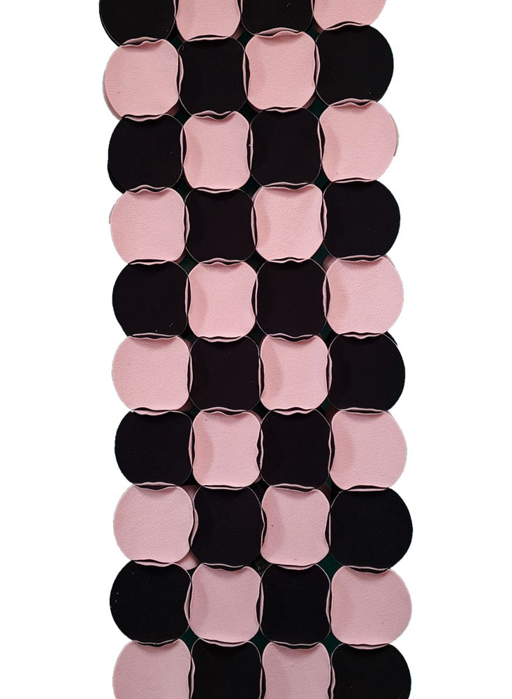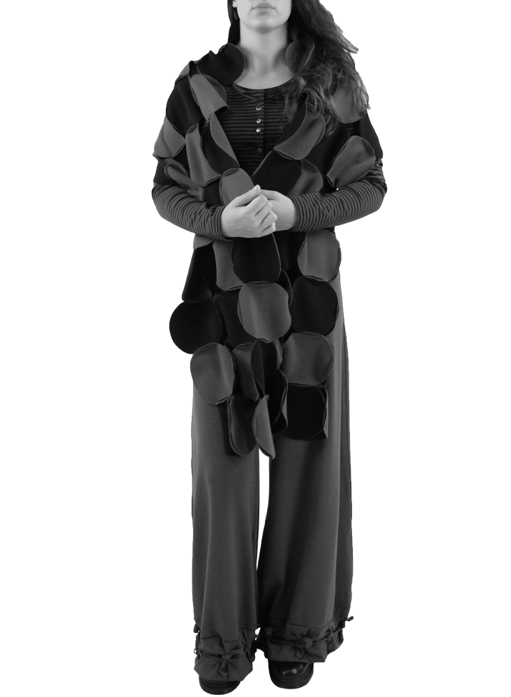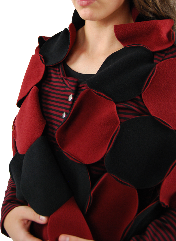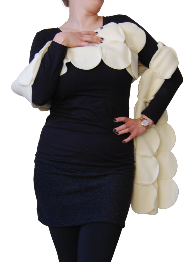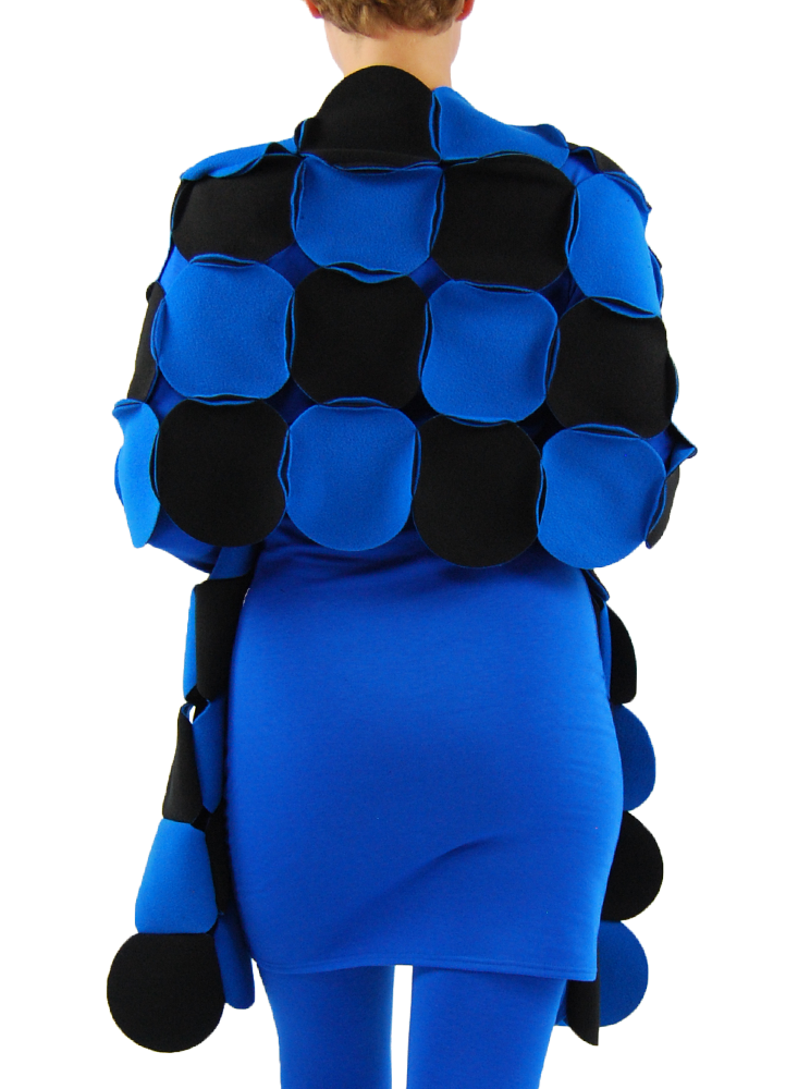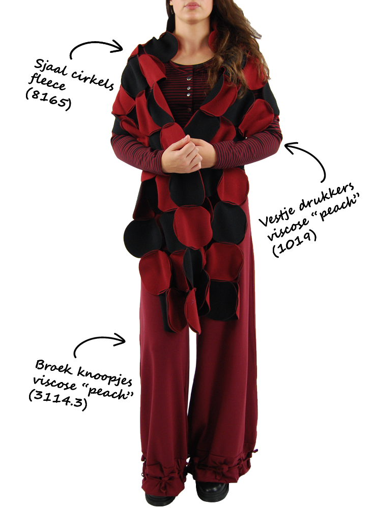 Royale sjaal van aan elkaar gestikte cirkels van fleece.